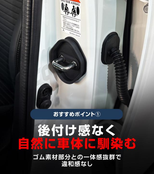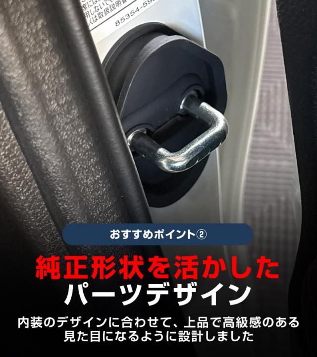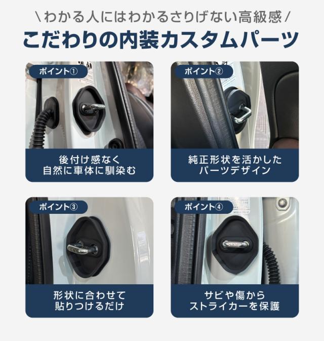 無機質なドアストライカーの露出した金具部分に装着することで、車の外観をさらに引き立てます。