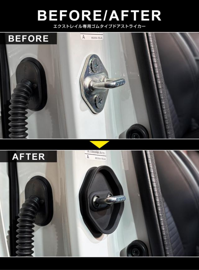 新型エクストレイル T33 ドアストライカーカバー ガーニッシュ 4P ゴムタイプ 2025年マイナーチェンジ後対応 内装 保護 カスタム パーツ アクセサリー カー用品 オプション ドレスアップ【メール便発送】