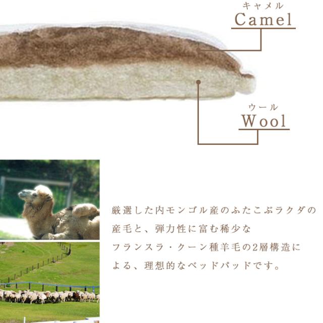 ベットパッドの詰物には、厳選した内モンゴル産のふたこぶラクダの産毛と、
