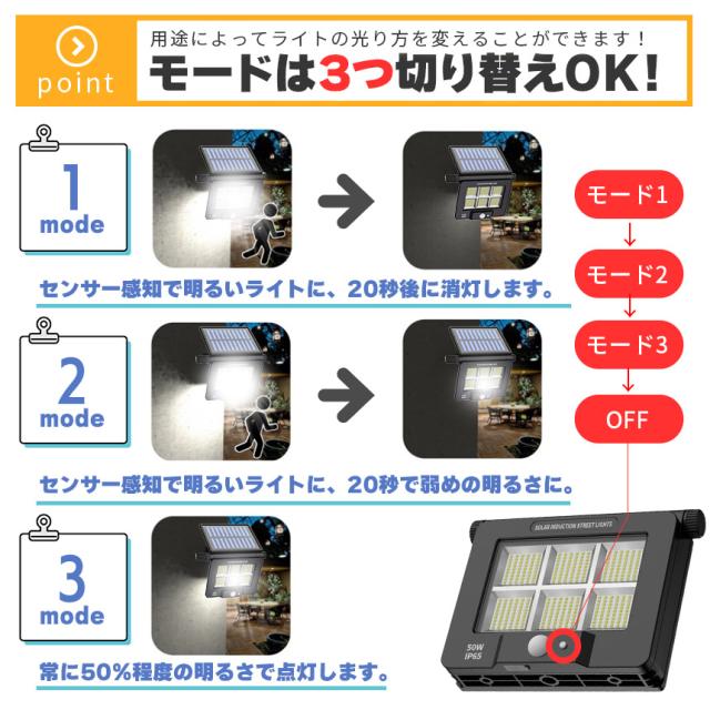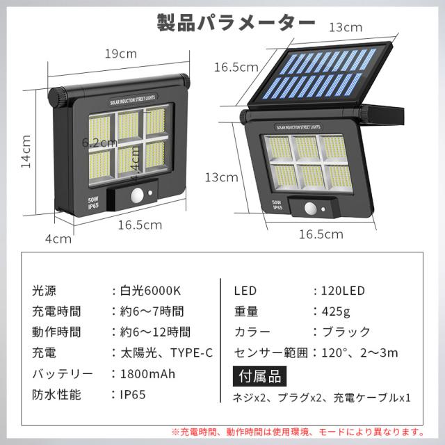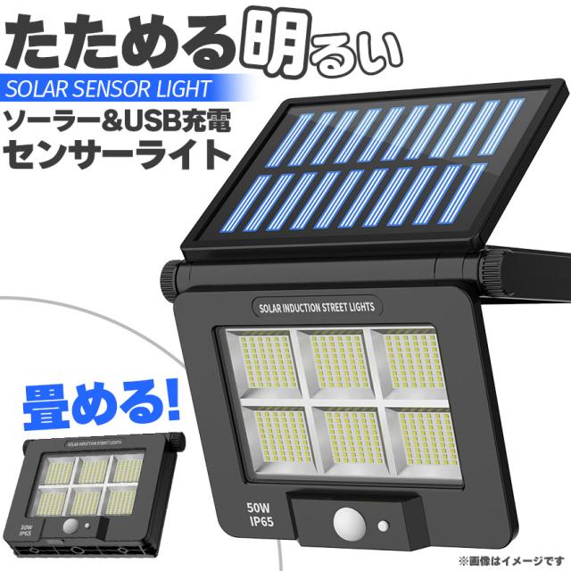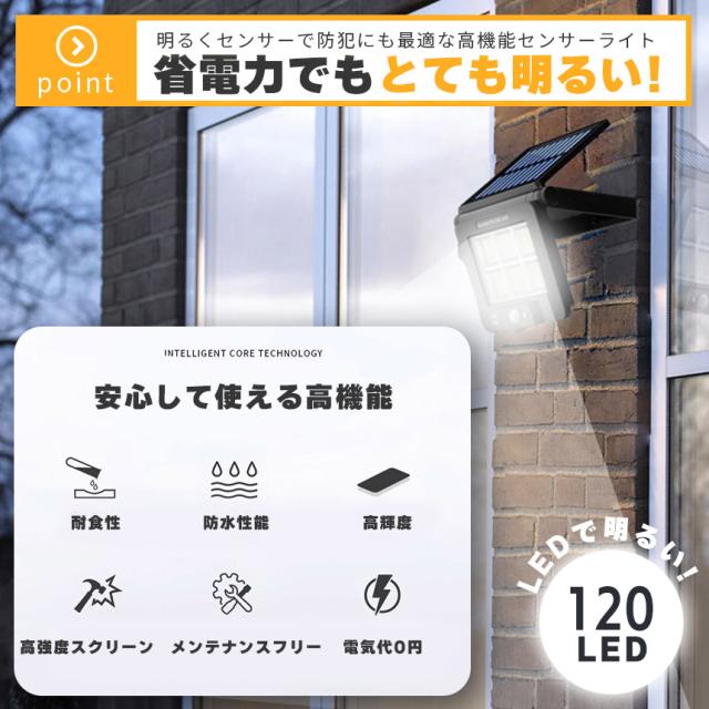 ソーラーライト LEDライト センサーライト 折りたたみ 120LED ライト 防犯 照明 自動点灯 人感センサー ソーラー充電 USB充電 3モード 昼白色 高輝度 明るい ガーデンライト 庭 玄関 倉庫 工場 自宅