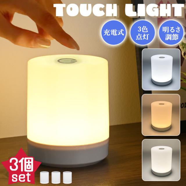 充電式 ナイトライト 3個セット タッチライト 3色点灯 明るさ調節 授乳ライト LEDライト ベッドライト 卓上ライト ミニライト コードレス ベッドサイド 授乳 おむつ交換 関節照明 タッチ 照明 夜 子ども 部屋 屋内 かわいい おしゃれ コンパクト 枕元 常夜灯 寝室 充電