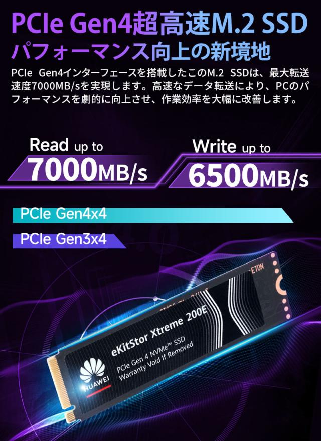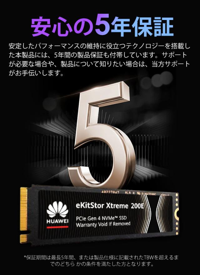 HUAWEI SSD 1TB M.2 2280 PCIe Gen4x4 NVMe 2.0 R: 7000MB/s W: 6500MB/s 3D NAND PS5動作確認済み 5年保証 ネコポス送料無料
