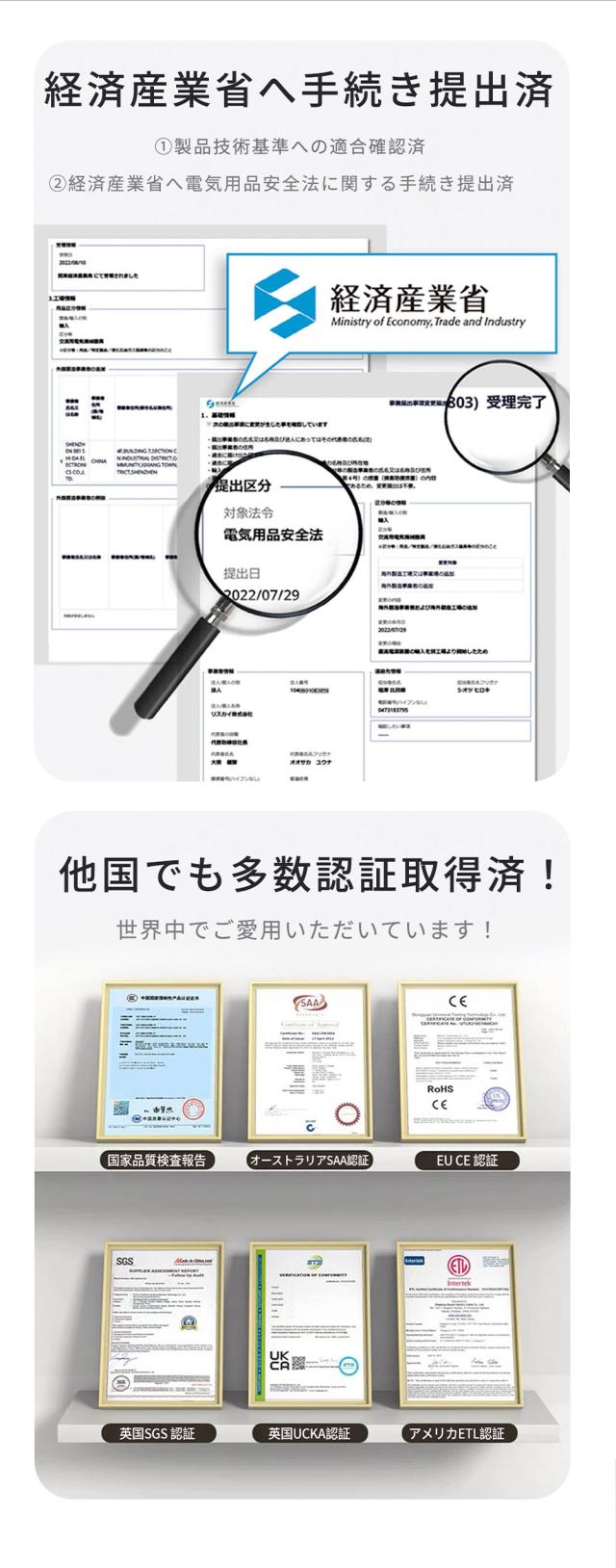 ●Type-C(急速充電対応) 5V/2.4A、9V/2A、12V/1.5A (MAX100W) ●Lightning 5V/2.4A (MAX12W)