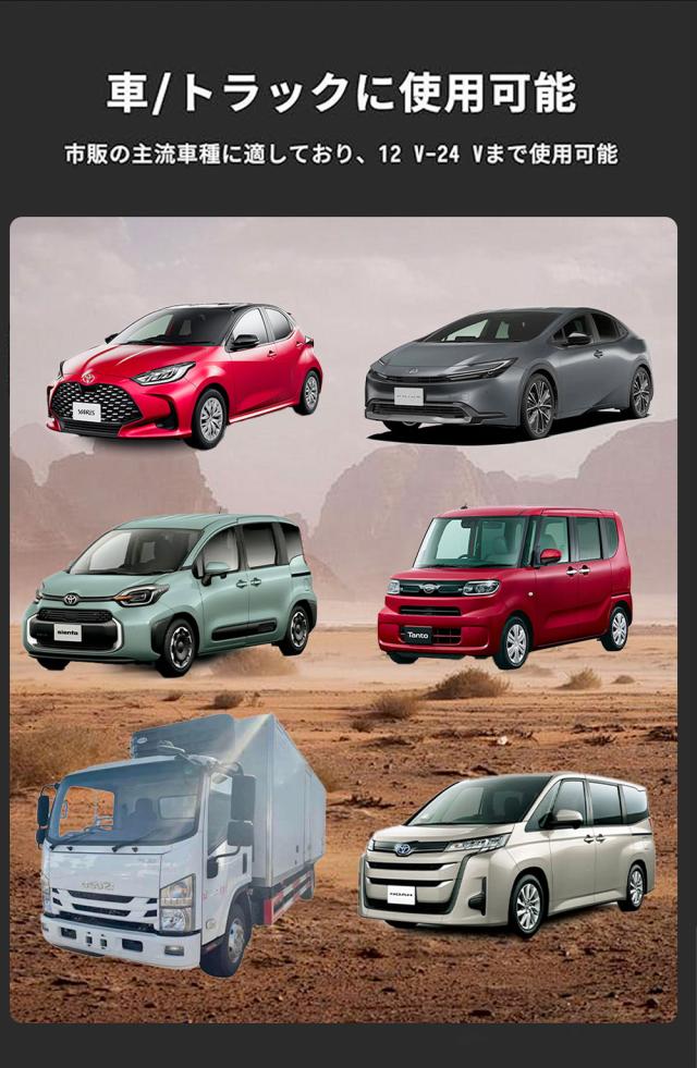 また注目点:このシガーソケット充電器はDC 12V~24Vの電圧の車に適用、ほぼ全てのシガーソケット装備車で使用可能です。