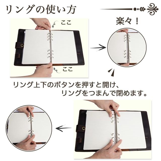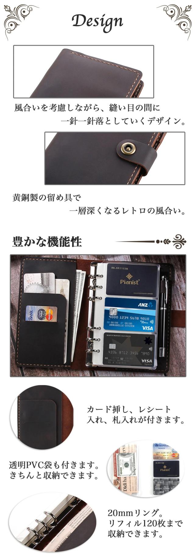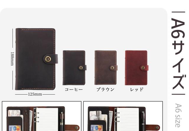 システム手帳 本革ノート ROTERDON 職人 手作り A6 6穴 ペンホルダー 付 本革 ビジネスノート スケジュール帳 ノート メモ帳 カード収納 ビジネスオフィス用品 卒業記念品 退職 就職 昇進お祝い プレゼント