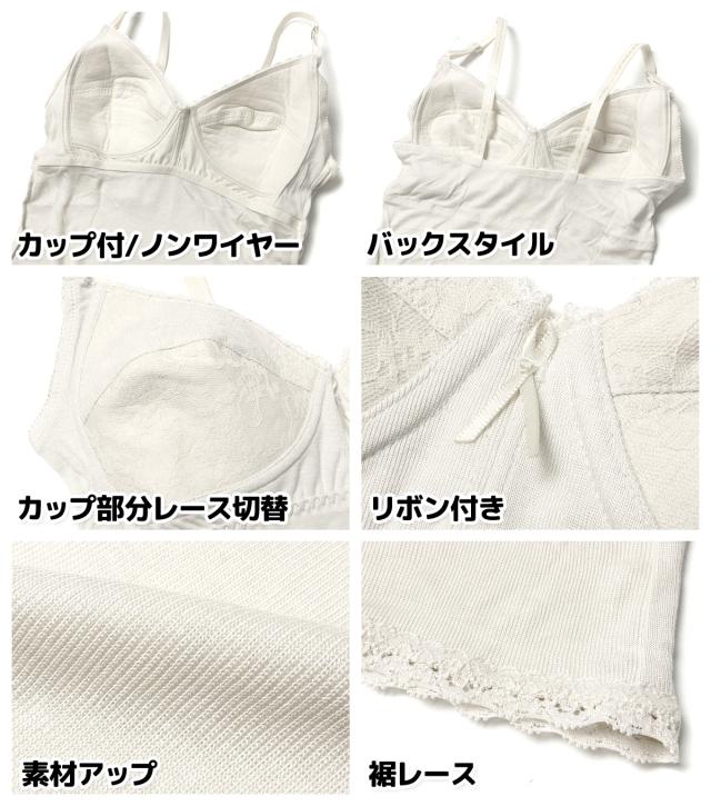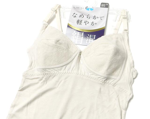 【送料無料】婦人 レディース シルク混 カップ付き キャミソール 絹混 なめらかで軽やか 伸縮性 レース 肌着 下着 インナー M L LL ygf-0023【メール便対応】