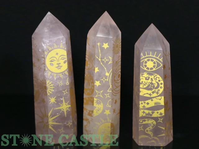 ☆一点物☆【置き石】ポイント型 ローズクォーツ スピリチュアルシンボル (3本セット) No.15 天然石 パワーストーン