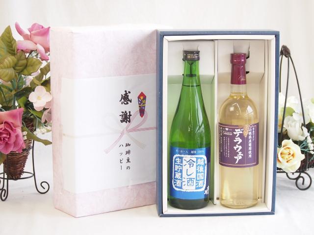 春の贈り物便り 感謝の贈り物ボックス 新潟県産米を100%使用清酒と国産ワイン2本セット(山梨県産葡萄使用 デラウエア白ワイン やや辛口(山梨県)720ml吉乃川越後国酒 冷し酒 生貯蔵酒(新潟県)720ml