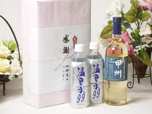 春の贈り物便り 感謝の贈り物ボックス 温泉水2本と国産ワインセット(山梨県産葡萄100%使用 甲州 辛口白ワイン 辛口(山梨県)720ml温泉水99 500ml×2本
