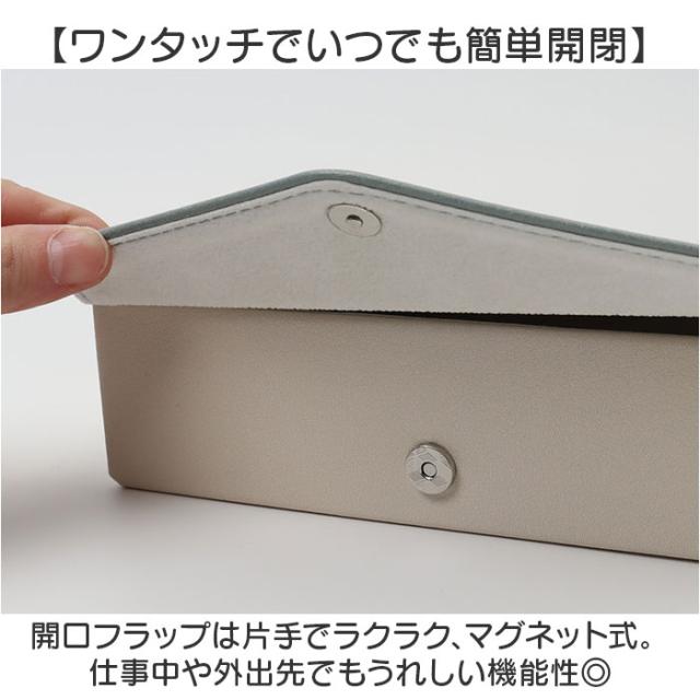 | 素材 | 【メガネケース】合成皮革、紙、PVC [内側]レーヨン100%(起毛加工) 【クロス】ポリエステル100% |