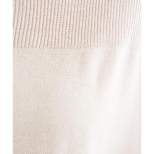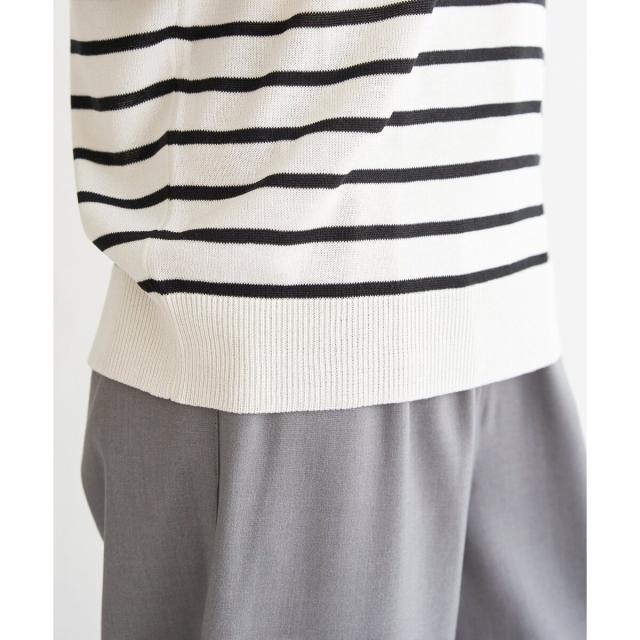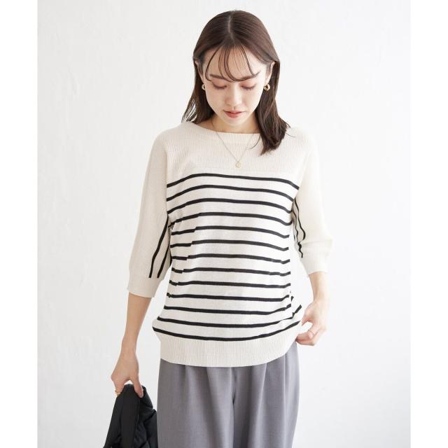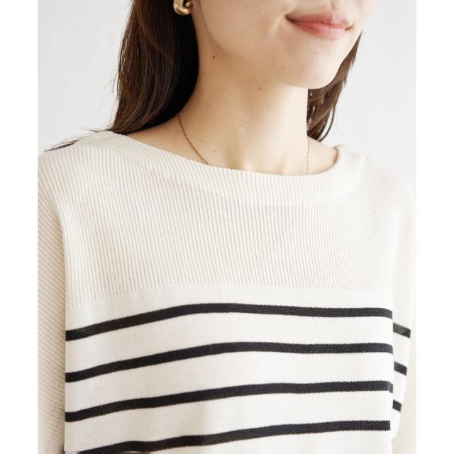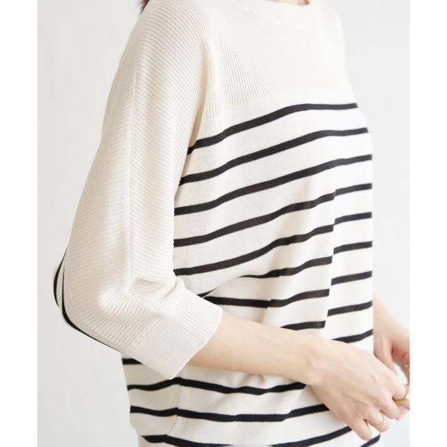 肩とボディで編地を切り替えたデザインが、シンプルながらも奥行きのある表情を演出するドルマンスリーブニット。