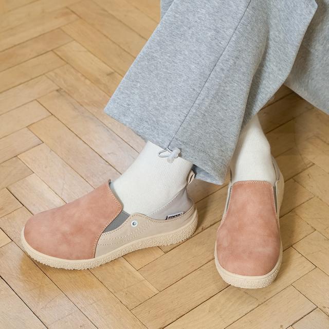 かかとを踏んでバブーシュのように履けるので、脱ぎ履きもラクラク。