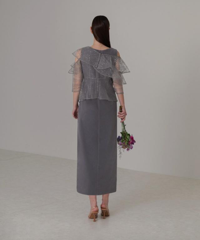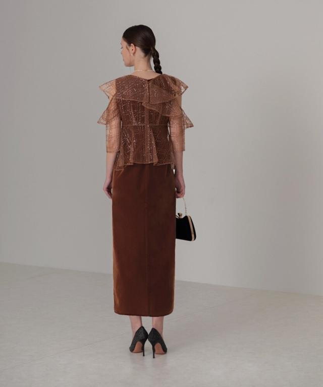 繊細なフリルと上品なベロア生地を組み合わせた華やかな2WAYドレス