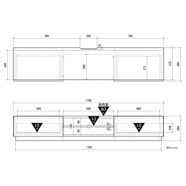 | サイズ | 約 幅176×奥行39×高さ28.8(cm) |
