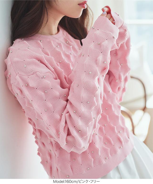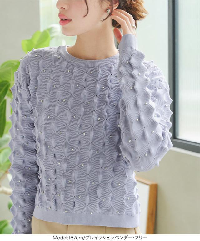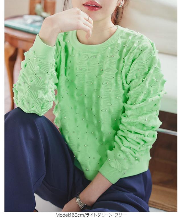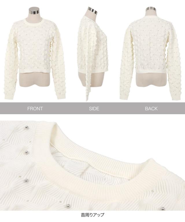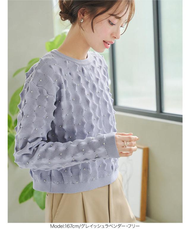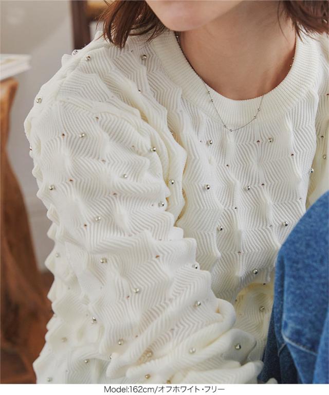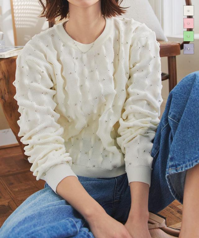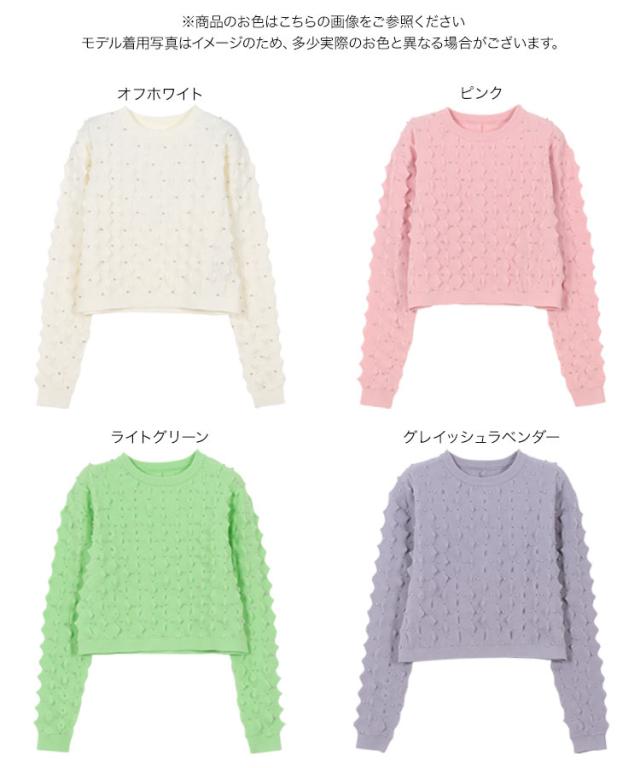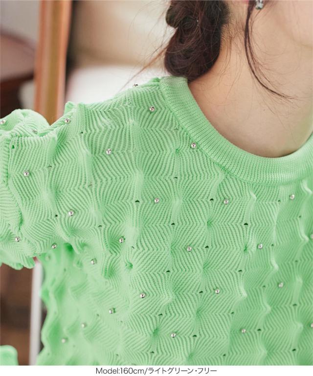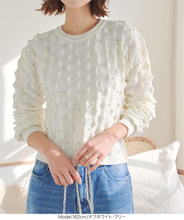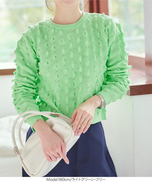 ドットスタッズ付きトゲトゲニットトップス N1162 入荷済 レディース 20代 30代 40代 トップス ニット 長袖 ドット スタッズ セーター トゲトゲ とんがり ポコポコ ショート丈 クロップド グリーン ピンク ホワイト 白