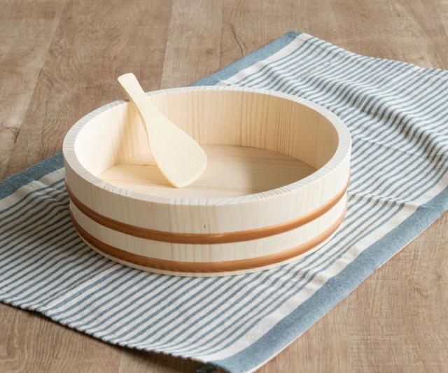 約3合用の寿司飯を作るのにぴったりな27cmの寿司桶です。扱いやすい大きさでダイニングテーブルにも邪魔にならずに置けます。