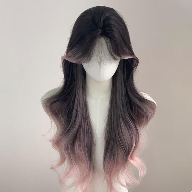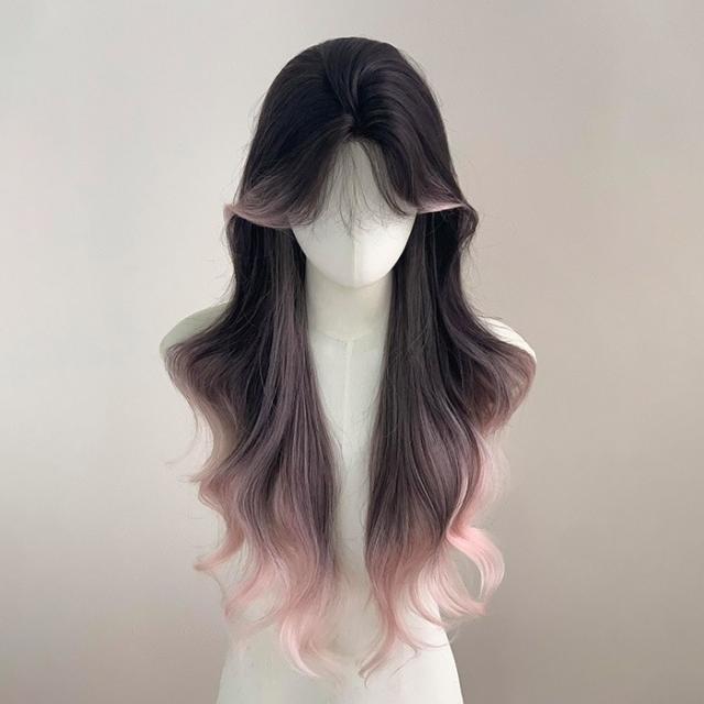 ウィッグ フルウィッグ 長髪 ブラックxピンク センター分けの前髪 巻き髪 ロングウィッグ ハロウィン 原宿風 かつら コスプレ 可愛い コスチューム 仮装 大人用 普段使い 文化祭 イベント 学園祭 演劇 舞台 学芸会 dp002m6m6m5