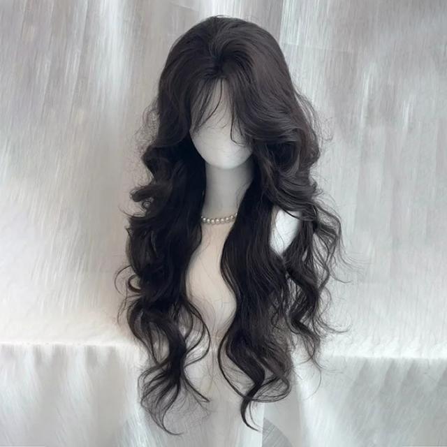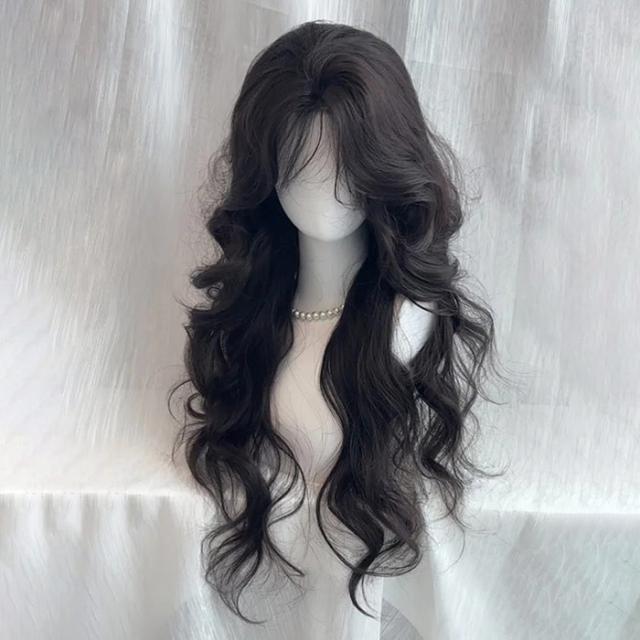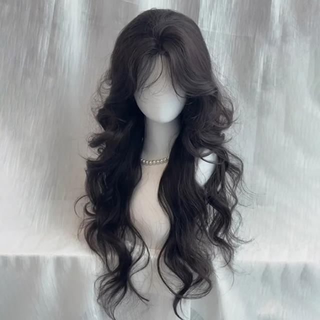 ウィッグ フルウィッグ 巻き毛 センター分けの前髪 ハロウィン 原宿風 韓国風 かつら コスプレ 可愛い コスチューム 仮装 大人用 普段使い 文化祭 イベント 学園祭 演劇 舞台 ブラック