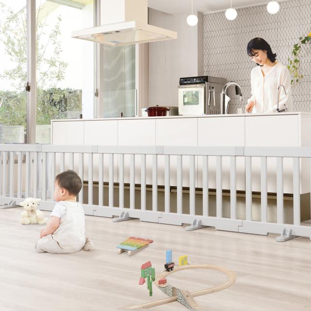 キッチンや窓際などお子さまが入って欲しくない所にパーテーション代わりとして設置もできます。サークルに入ると泣いてしまう。囲いが苦手というお子様の場合にぴったりです。