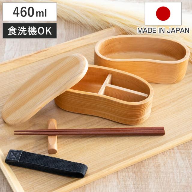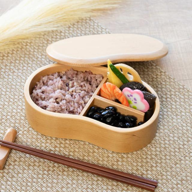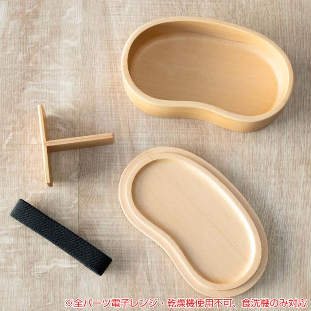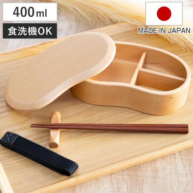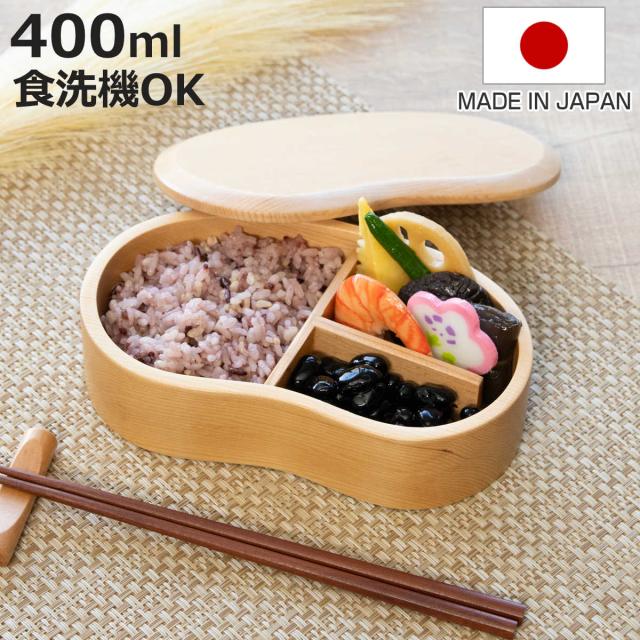 弁当箱 天然木くり抜き弁当箱 豆型 400ml ナノコート ( 弁当 お弁当 一段 天然木 かわいい おしゃれ ゴムバンド付き 仕切り付き 日本製 木 木製 くりぬき ランチボックス シンプル 和風 1段 お弁当箱 )