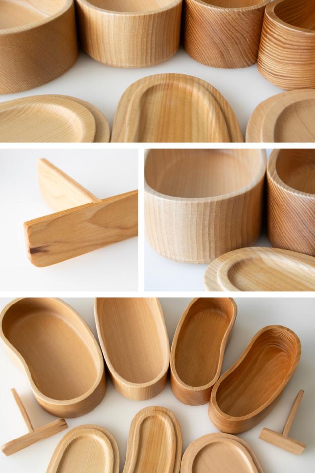 職人の技によって天然木を一つ一つくり抜かれたお弁当箱は、色や木目などそれぞれニュアンスが違います。