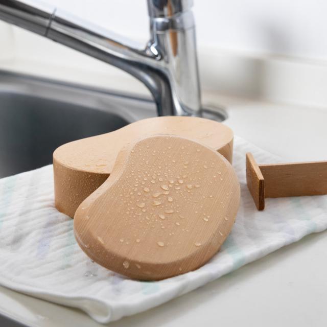 ナノ粒子のコーティングが施されているので、撥水性があり洗いやすいです。また、くり抜いている事で角が丸く、お手入れ簡単です。