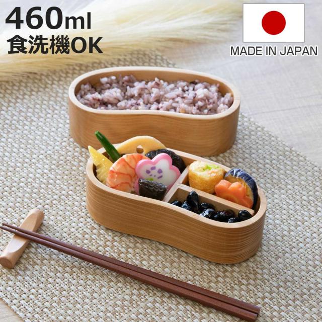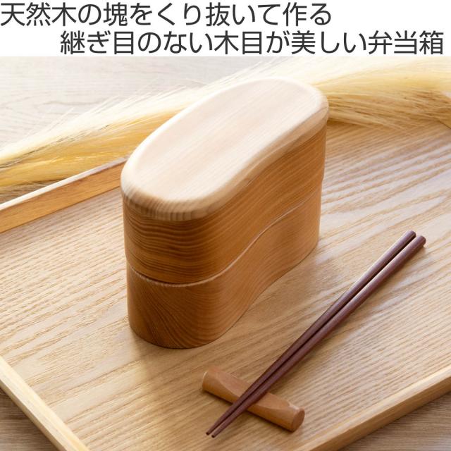 弁当箱 天然木くり抜き弁当箱 豆型2段 460ml ナノコート ( 弁当 お弁当 二段 天然木 かわいい おしゃれ ゴムバンド付き 仕切り付き 日本製 木 木製 くりぬき ランチボックス シンプル 和風 2段 お弁当箱 )