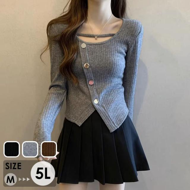 トップス ニット セーター セクシー 長袖 ブラウス カットソー 韓国風 大人 可愛い かわいい 秋 冬 春 オフィス 通勤 20代 30代 40代 OL レディース ファッション ぽっちゃり ゆったり カジュアル おしゃれ de131n1n1x7 de131n1