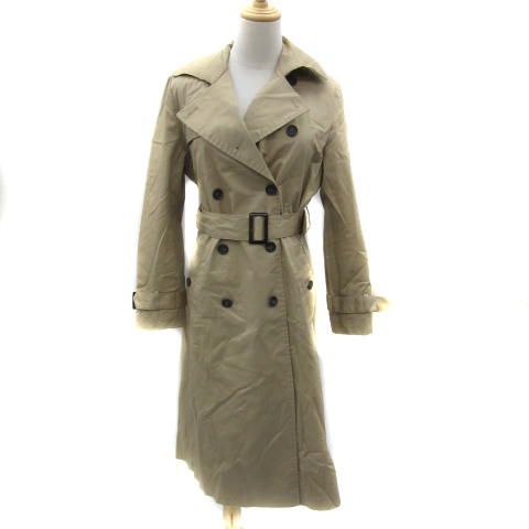 【中古】アンデミュウ トレンチコート スプリングコート ロング丈 無地 ウエストベルト付き S ベージュ レディース