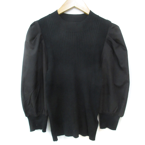 【中古】インタープラネット リブニット カットソー 長袖 ボトルネック 切替 無地 F 黒 ブラック /FF36 レディース