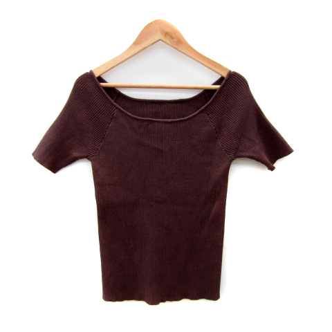 【中古】グレイル GRL リブニット カットソー 五分袖 ラウンドネック 無地 S ブラウン /SY28 レディース