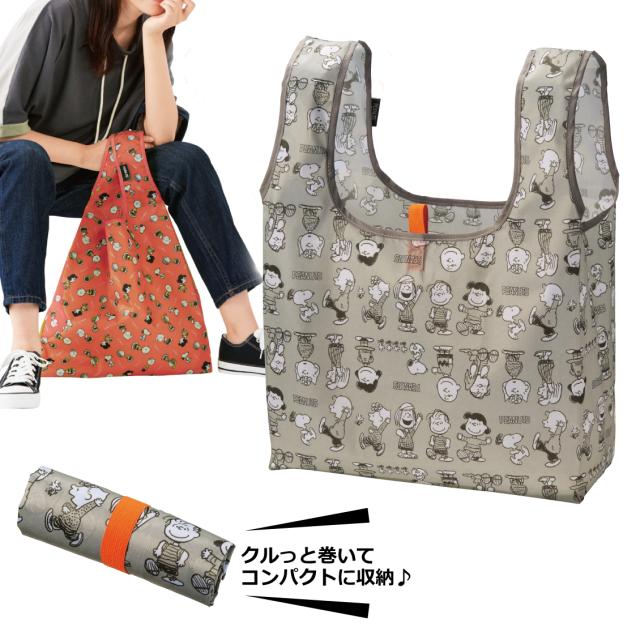 スヌーピー エコバッグ 丸める 1枚 選べる 3色 ショッピングバッグ マイバッグ サブバッグ 携帯 買物袋 コンパクト 折りたたみ 携帯しやすい 男女兼用 スーパー コンビニ ショッピング 買い物 プレゼント 子供 お返し ホワイトデー バレンタイン グレー オレンジ ネイビー