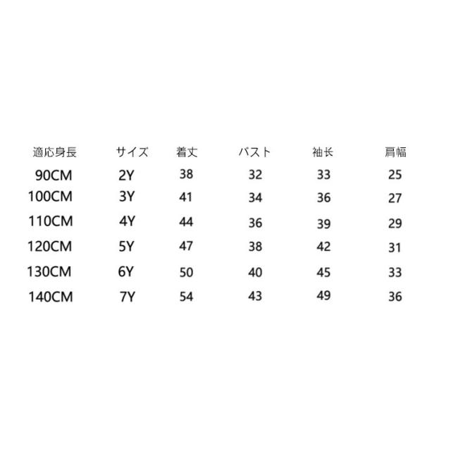 | サイズ | 2Y(90cm) 3Y(100cm) 4Y(110cm) 5Y(120cm) 6Y(130cm) 7Y(140cm) |