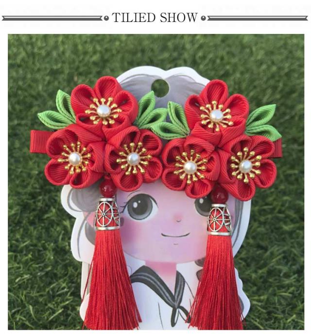 七五三 7歳 髪飾り 三歳 3歳 七歳 通年用 つまみ細工 2個セット 七五三 礼装 おしゃれ 子供 女の子 女児 レッド