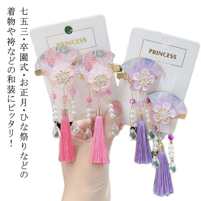 花 髪飾り 7歳 ガールズ 3歳 2点 髪飾り 七五三 卒業式 七歳 三歳 女の子 ヘアクリップ 七五三 卒園式 2点セット 着物 浴衣 髪飾り ヘアアクセサリー レッド パープル ブルー ピンク