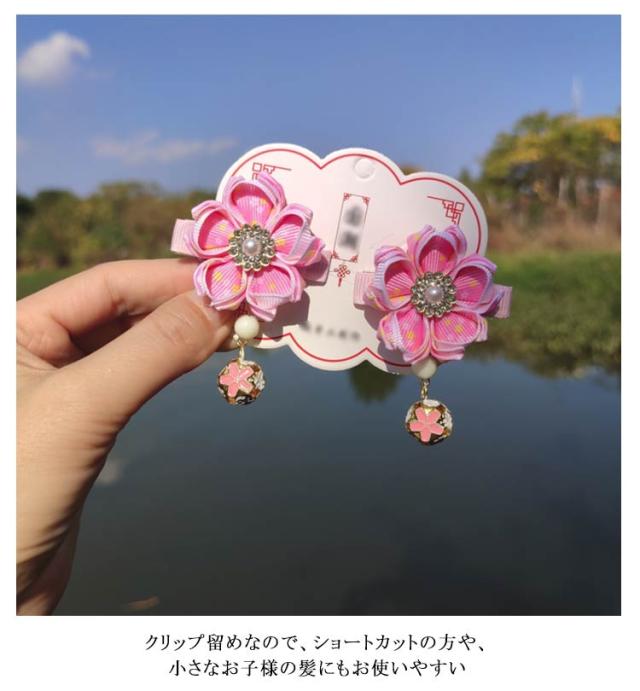 | ・七五三・卒園式・お正月・ひな祭りなどの着物や袴などの和装にピッタリ! ・2本あわせてボリュームを出したり、左右につけたり、ご自由に組み合わせできます♪ ・クリップ留めなので、ショートカットの方や、小さなお子様の髪にもお使いやすい | |