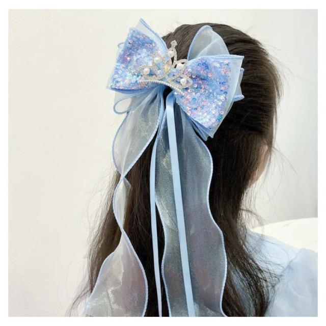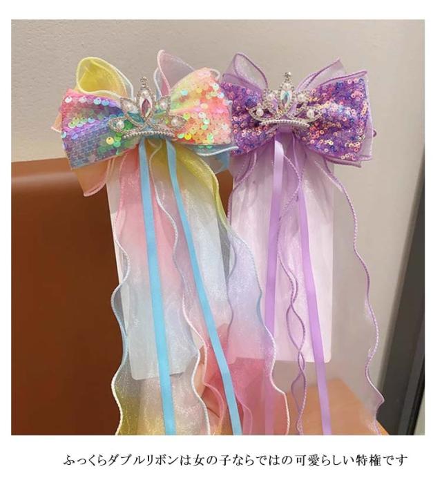 シア— ヘアピン ロングリボン 子供 キッズ 女の子 リボン ヘアアクセサリー オーガンジー ガールズ おしゃれ 発表会 リボン 入学式 結婚式 卒業式 大人っぽい 大人可愛い ハンドメイド スパンコール キラキラ 青 ブルー リボン ピンク 紫 クリーム ネイビ カラフル