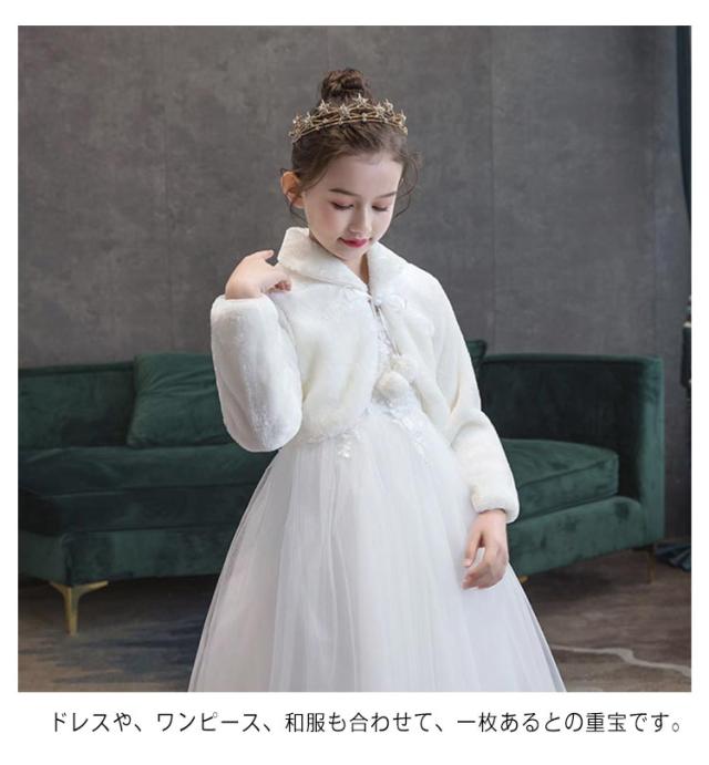 白 フォーマル ピアノ発表会ケープ フォーマル マント ふんわり 子供ファーボレロ 子供 キッズ ガールズ ケープ 長袖 ボレロ キッズボレロ ウェディングショール 子供ドレス 誕生日 音楽会 演奏会 パーディー 七五三 記念撮影用 フェイクファー 春 秋 冬