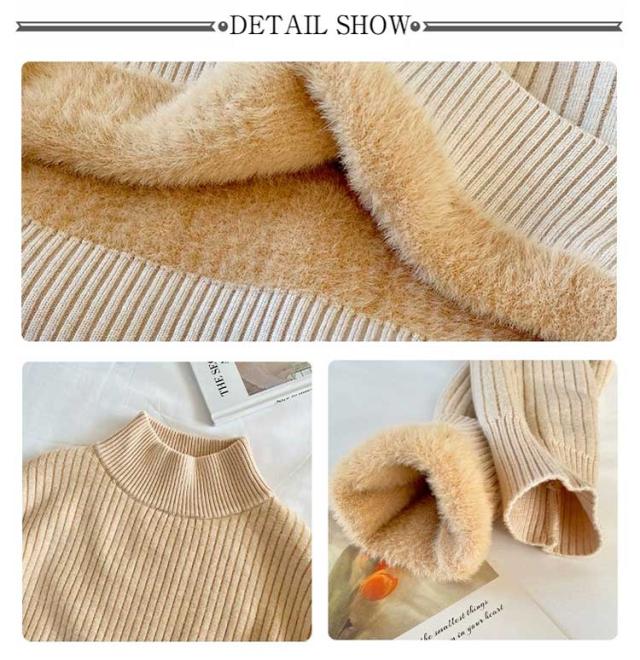 ハイネック 裏ファー シャギー セーター リブニット 裏ファー 裏起毛 厚手 通学 シャギー 秋冬 ふわふわ トップス タートルネック ぽかぽか あったかい きれいめ カジュアル オフィスカジュアル 通勤 裏ファー 上質