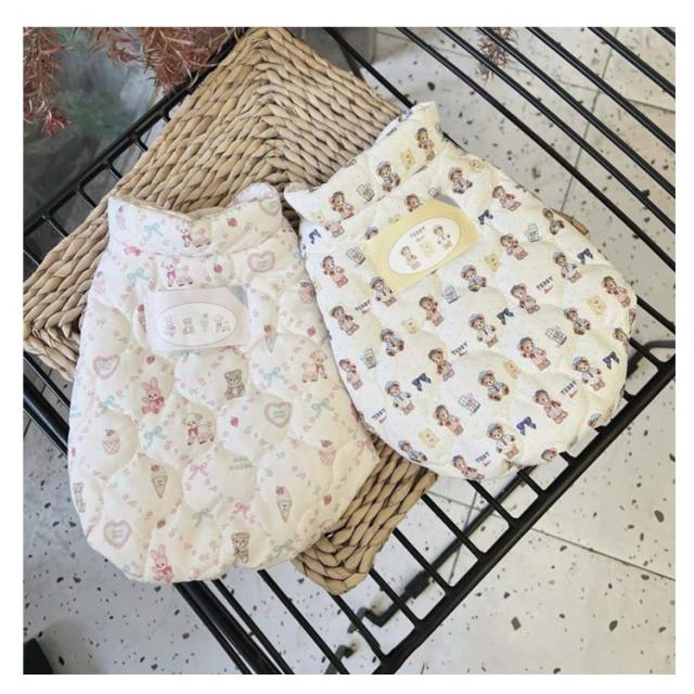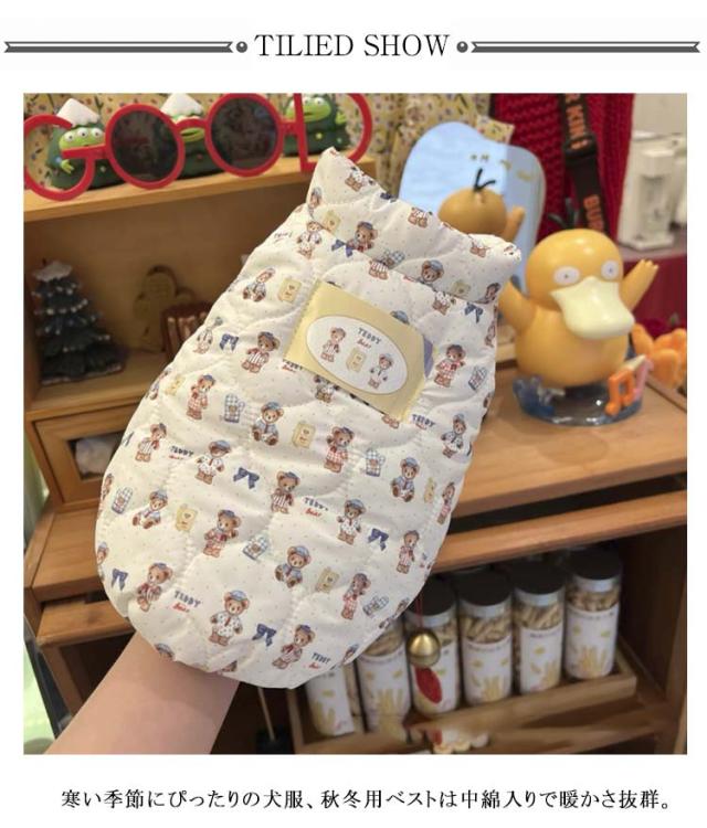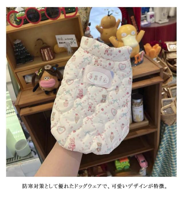 | おしゃれなペットアウターとして、抜け毛防止効果もあり、お散歩時に最適。 寒い季節にぴったりの犬服、秋冬用ベストは中綿入りで暖かさ抜群。 防寒対策として優れたドッグウェアで、可愛いデザインが特徴。 | |