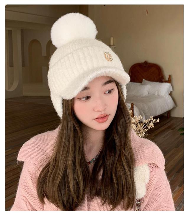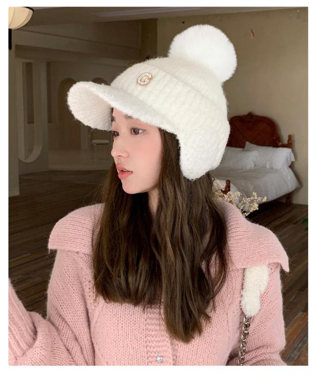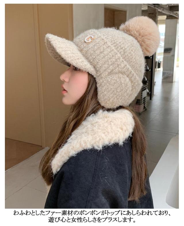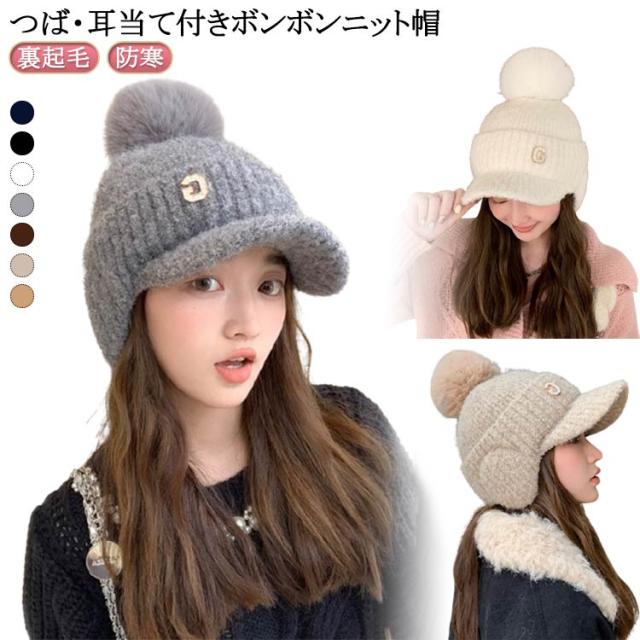 裏起毛 秋冬 ニット帽 つば付き 耳当て ニットキャップ かわいい 防寒 女性 ニット帽 ゴルフキャップ 寒さ対策 ボンボン おしゃれ ボンボン ふわふわ 帽子 キャップ アウトドア 韓国 女の子 大人 スキー
