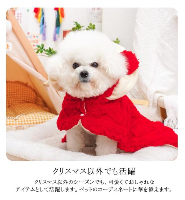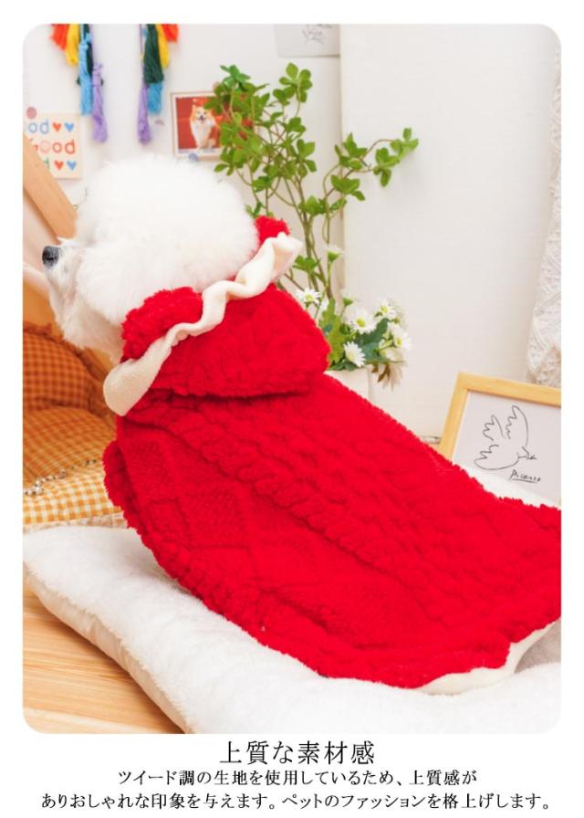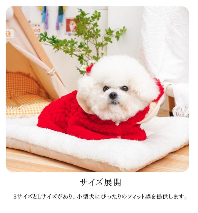| 【クリスマスにぴったりのデザイン】 赤いケープに白いフリル付きフードで、クリスマスの雰囲気を盛り上げます。大きなリボンがとてもキュートです。 【寒い季節でも暖かく】 ツイード調の素材で、寒い季節でも暖かく過ごせるデザインです。ペットが快適にお出かけできます。 【簡単な着脱】 ボタンで留めるだけなので、着脱がとても簡単です。 【上質な素材感】 ツイード調の生地を使用しているため、上質感がありおしゃれな印象を与えます。ペットのファッションを格上げします。 【サイズ展開】 SサイズとLサイズがあり、小型犬にぴったりのフィット感を提供します。 【クリスマス以外でも活躍】 クリスマス以外のシーズンでも、可愛くておしゃれなアイテムとして活躍します。ペットのコーディネートに華を添えます。 | |