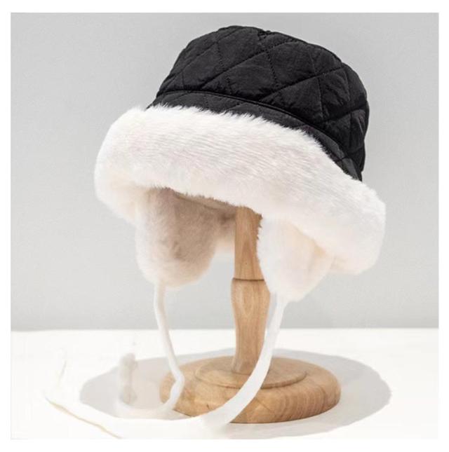 | リバーシブルタイプ! レトロなキルティングレディース耳あて付き裏起毛帽子 | |
