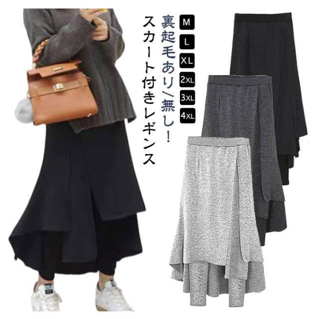 レギパン タイツ スカッツ カジュアル 防寒 体型カバー スカートレギンス スカート付きレギンス 大きいサイズ ミモレ 膝下 暖かい スカートレギンス あったか フレアスカート ウエストゴム レディース 裏起毛 秋冬 膝下 通勤 重ね着風 ブラック 黒 グレー
