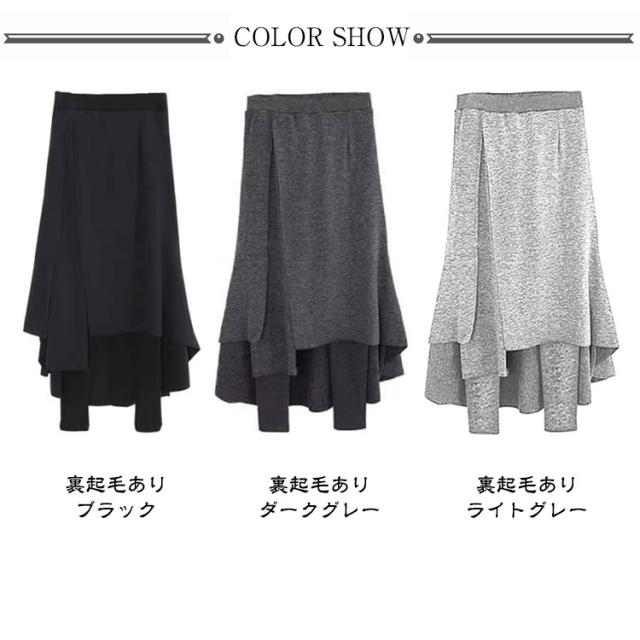 | 裏起毛あり/無し!スカート付きレギンス 肌触りのいい裏起毛が暖かいスカート付きレギンス。 女性らしさを感じる膝下の丈で、着回しにも優れております。 ストレッチが効いているので締め付け感も少なく、体型をカバーしながら スカートスタイルをお楽しみいただけます。 嬉しい裏起毛&薄手の2タイプがあって、 シンプルなブラックとグレーはデイリー使いやすいです。 | |