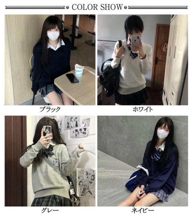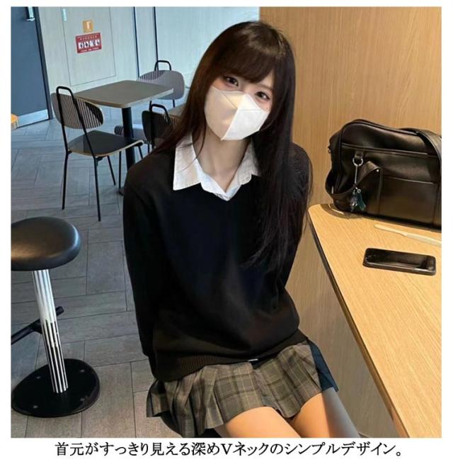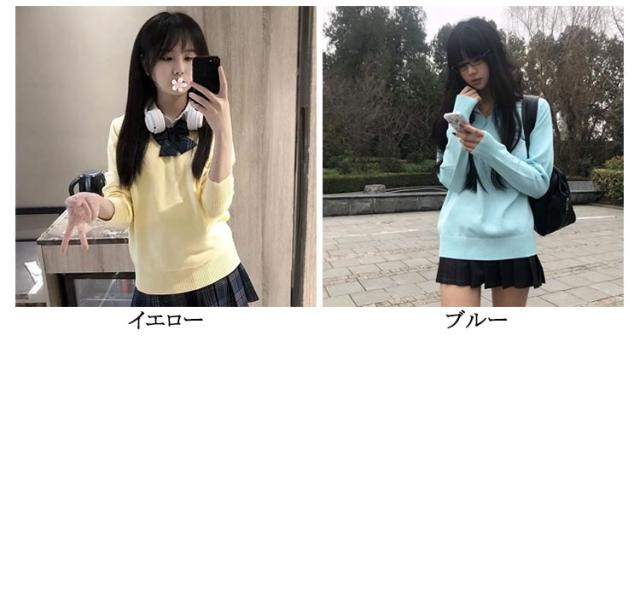 無地 冬 スクールセーター 無地 ニットトップス vネック かわいい 女子 シンプル アクリル ハイゲージ ニット 学校 長袖 薄手 ニット スクールセーター ゆったり 学生 JK 制服 学生服 通学 秋 プルオーバー レディース 長袖トップス