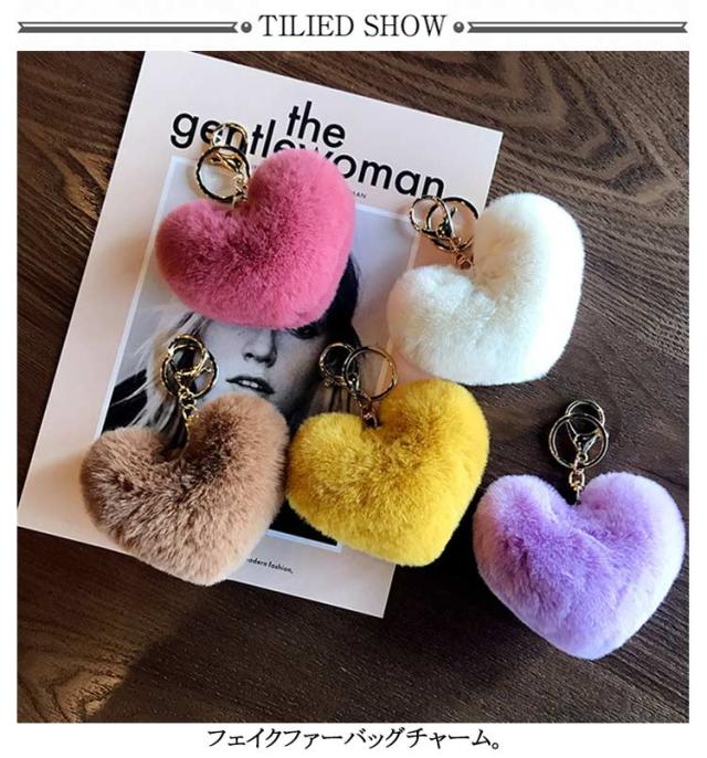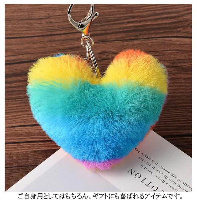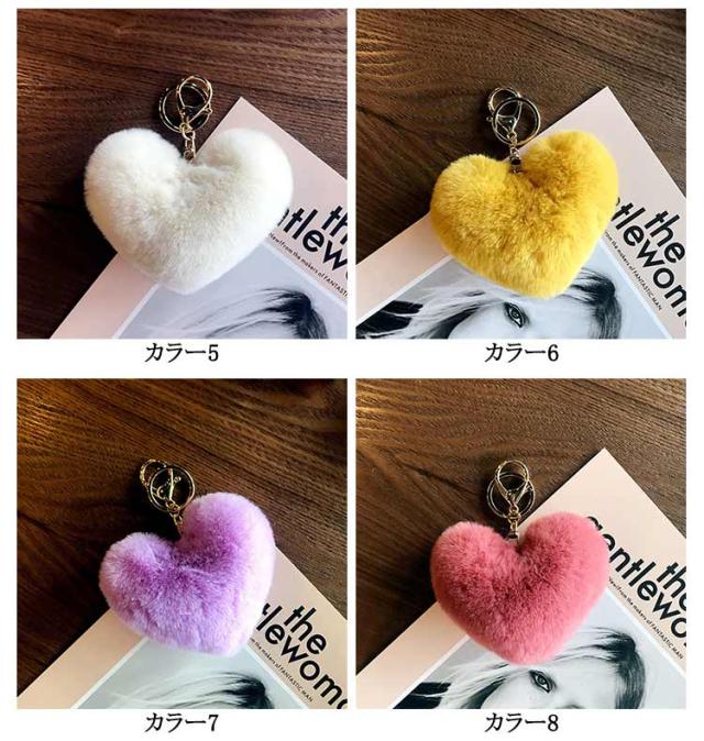 推し色 2個セット 約8cm ハート エコファー キーホルダー フェイクファー バッグチャーム 2個セット ファー アクセサリー ハート 推しグッズ 推し活 カラフル 秋冬 DIY ふわふわ ポンポン ハート ストラップ バッグチャーム