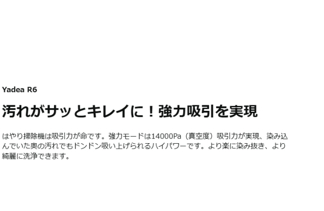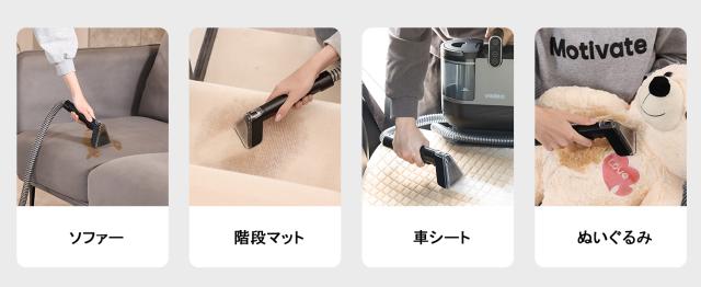 最大14000PA吸引力で布製品に長年蓄積した埃/シミ/カビ/あぶら、子供の食べこぼし、ペットの吐瀉物/粗相/足跡、蓄積された頑固な汚れを奥からどんどん吸い出せる。(当製品は洗剤使用可能のタイプです。ひどい汚れの場合、洗剤と併せてご使用お勧めです。※お勧めの洗浄アイテム:アルカリ電解水、重曹、クエン酸)