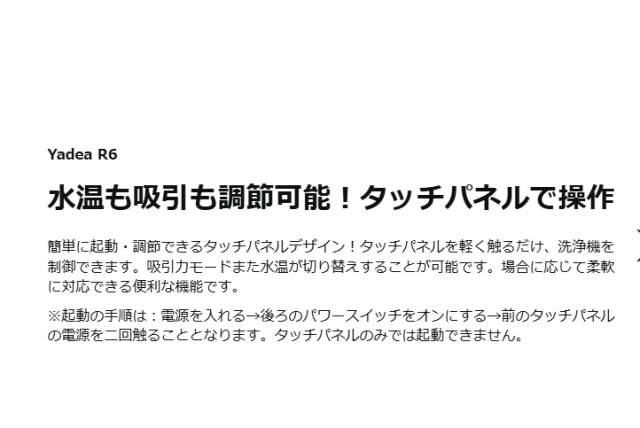 LEDタッチパネルで操作できる!10000Pa標準モードと14000Pa強力モードがあり、加熱温度は40℃と60℃が設定可能、洗浄対象によって簡単に選べる。適用範囲は広くて色々布製品に対応するブラシヘッド、面積の広い布製品をより楽に洗浄できる大型ブラシヘッドまたホース洗浄用のセルフクリーニングヘッドを提供し、色々なシーンに対応!