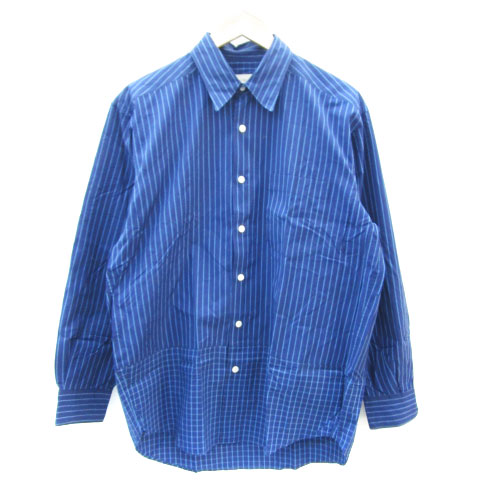【中古】パッゾ PAZZO WORLD カジュアルシャツ 長袖 ストライプ柄 48 M ネイビー 紺 /YM25 メンズ